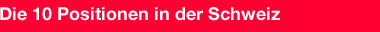 1. Armbrustschiessen, Altdorf 2. Wandern, Matterhorn 3. Bräteln, Davos 4. Alphornspielen, Jungfraujoch 5. Hornussen, Zuchwil 6. Käsen, Greyerz 7. Talerschwingen, Appenzell 8. Zollkontrolle, Chiasso 9. Fahnenschwingen, Genf 10. Neutral sein, Bern